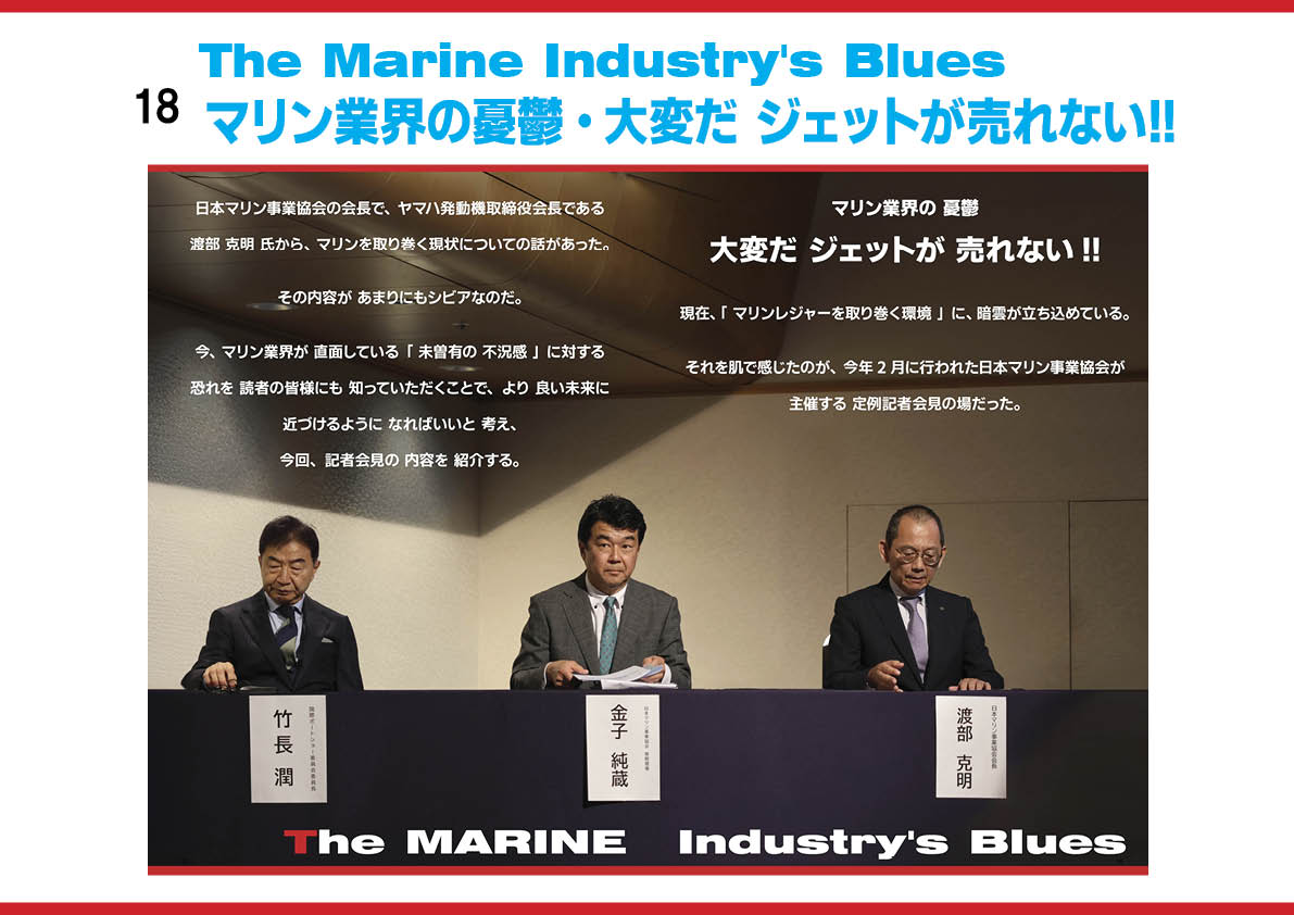 今、マリン業界が 直面している「 未曽有の 不況感 」に対する 恐れを 読者の皆様にも 知っていただくことで、より 良い未来に 近づけるように なればいいと 考え、今回、記者会見の 内容を 紹介する。