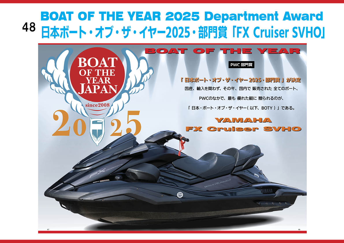 PWC部門賞は「 YAMAHA FX Cruiser SVHO 」に決定した。