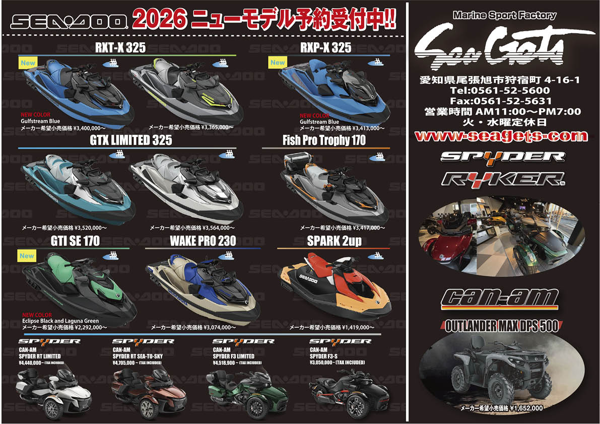 【 水上バイク・最新 カタログ 】2026年 BRP SEA-DOO(シードゥ)ニューモデル 国内 全モデル ラインナップ