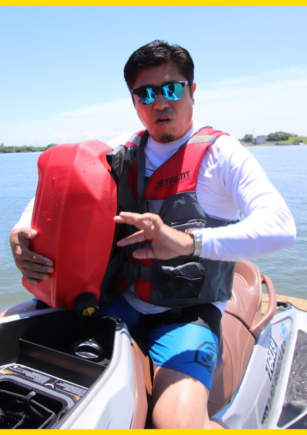 2018年モデルから変更になった給油口の位置も、大きく関係しています。実は私(編集部A)は、初めてこの給油口の位置を見たとき、非常に嫌でした。理由は、ガソリンがこぼれたとき、「ストレージBOXに入ってしまうのでは?」と感じたからです。しかし、西本店長曰く「水面が荒れていても、ここに給油口があるお陰で、簡単に給油ができる」と言います。後ろを向いて、ガソリンタンクを外し、抱えて給油する。たったこれだけ。こんなこと、今までのジェットではできませんでした。