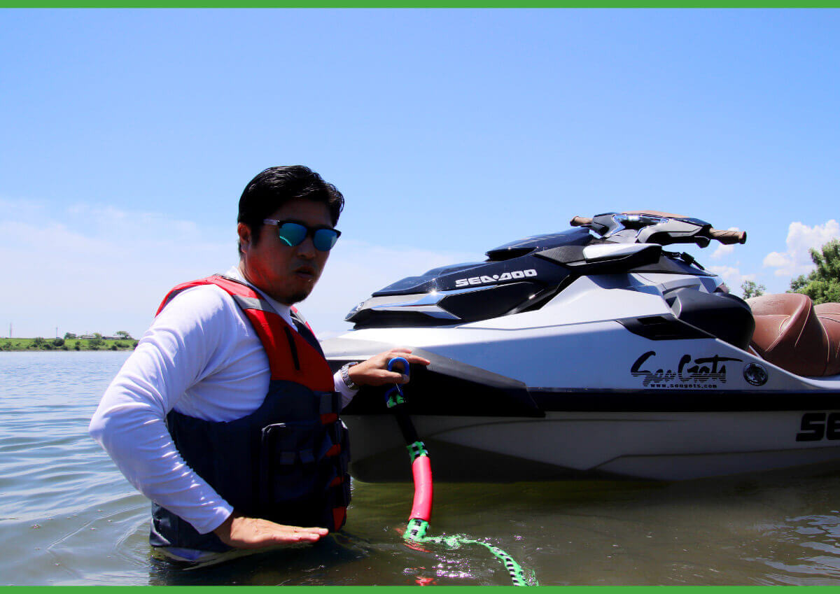ジェットスキーに乗ったまま作業する人は、極力、「濡れたくない」と思っているかもしれません。しかし、そう思っていると、トラブルが起きやすい。むしろ、いつでも水に入ることを心掛けておきましょう。