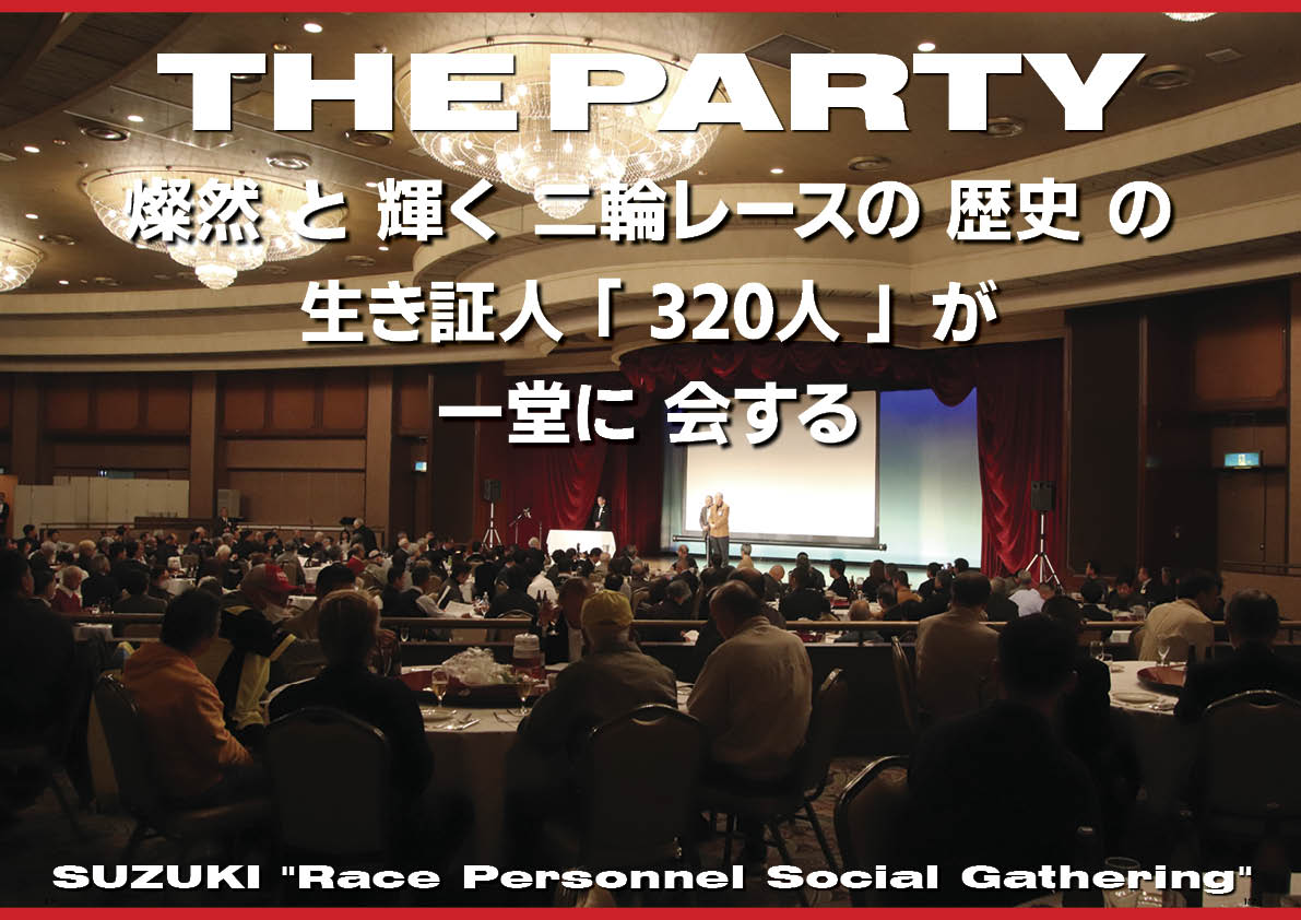 往年の名ライダーやスズキのレース関係者が、300名以上も集まる盛大な会となった。二輪のレースの歴史は意外と古い。