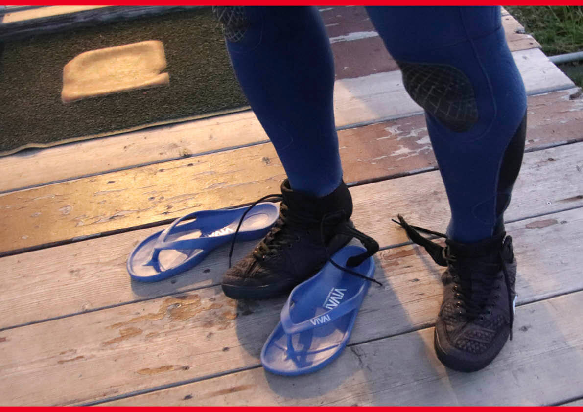 これから真冬の取材では、「家からドライスーツ&シューズ着用」は、私の定番になるだろう。これだけ長くジェットに乗っているのに、こんな簡単なことも気が付かなった。