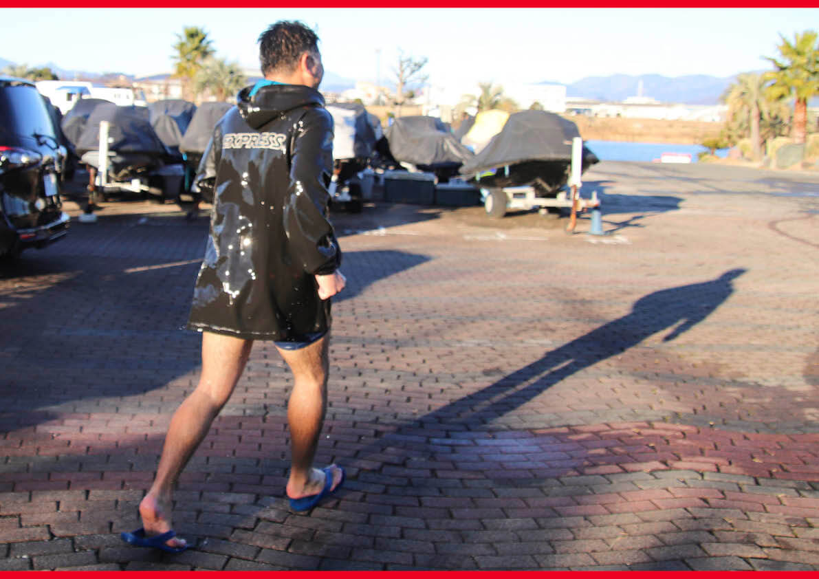 こういうご時世だからこそ、「当たり前にジェットに乗れる」ことが「幸せ」だと思える。 前日の大晦日、一緒に乗り納めライディングをしたジェットショップ55HEAVENの加藤豪店長のジェットシューズが、翌朝になったら「カチンコチンに凍っていた」。エアコンの温風に当てながら、何とか履こうと悪戦苦闘しているが、それでも、シューズは凍ったままで履けない……。責任感の強い加藤店長は、「仲間を待たせてはいけない!」と、半ばパニック状態になっていた。