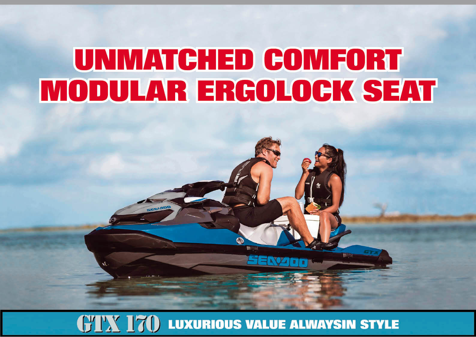 2020年SEA-DOO(シードゥ)ニューモデル「GTX 170」。NAエンジンなので燃費も良く、ロングツーリングにも最適なモデルです。オーディオなどの装備は、フラッグシップと変わらぬラグジュアリーさを備えています。