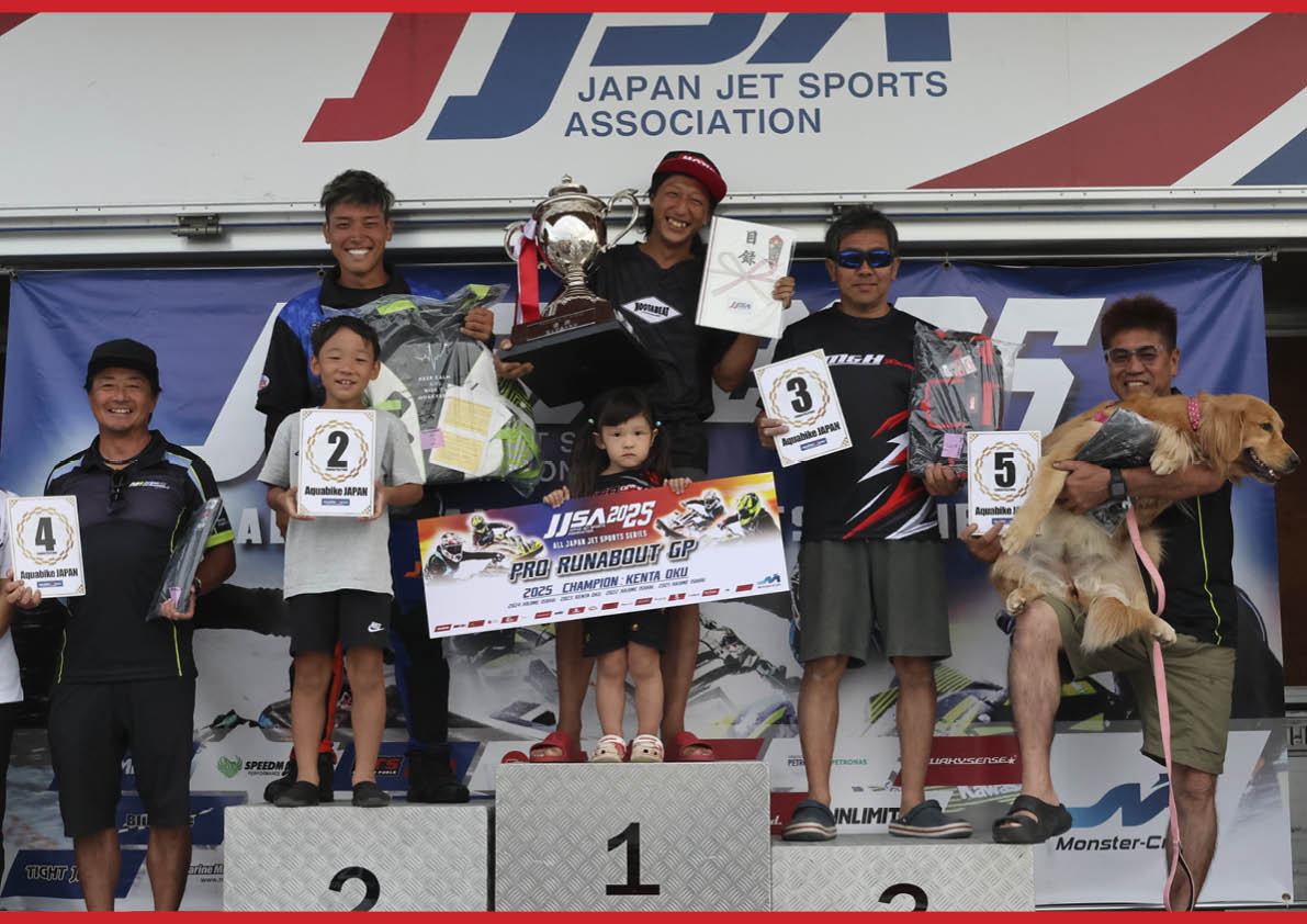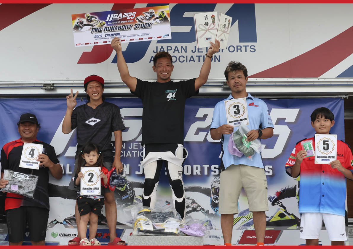 総合5位は大岡 選手(写真右)は、シリーズ・チャンピオンを獲得。ミスターPro Runabout 1100 Stockクラスの称号は死守!