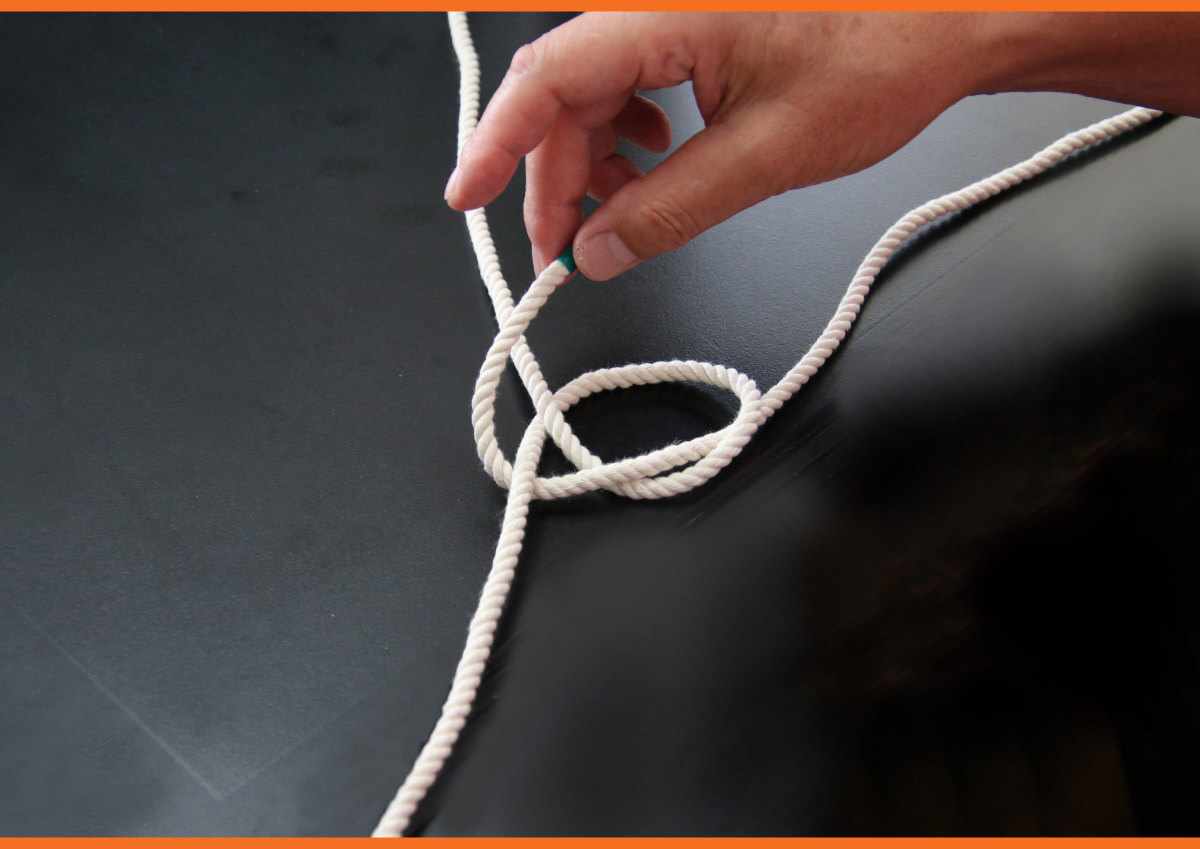 6 通したロープを、もう片方のロープの下にくぐらせます。